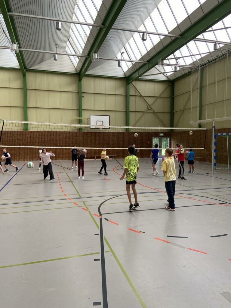 Im Rahmen des Volleyball-Landesverbands Württemberg fand an unserer Schule ein sportlicher AOK Aktionstag statt, der dem Volleyball gewidmet war. Schülerinnen und Schüler der Klassenstufe 5 und 6 hatten die Gelegenheit, ihre Begeisterung für die Sportart Volleyball zu teilen und ihr Können unter Beweis zu stellen. Unter der Leitung von Herrn Blecher, vom TG Laudenbach, konnten die Schülerinnen und Schüler ihre Fähigkeiten in verschiedenen Übungen verbessern und optimieren. Ein besonderer Dank gilt Herrn Blecher, der diesen Tag mit seinem Einsatz und seiner Leidenschaft für Volleyball möglich gemacht hat. Mit dem Erfolg dieses Aktionstags Volleyball blicken wir mit Vorfreude auf weitere sportliche Veranstaltungen.