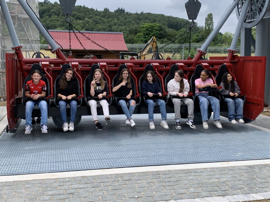 Der Erlebnispark Tripsdrill stand schon zu Beginn des Schuljahres ganz oben auf der Wunschliste der Klasse 7a. Jetzt konnte dieser Wunsch erfüllt werden. Wir genossen einen abwechslungsreichen Tag mit Achterbahnen in allen Variationen, wilder Gautsche/Karacho, Hals über Kopf, Waschzuber-Rafting und vielem mehr. Die ein oder andere Attraktion fuhren wir nach der Mittagspause sogar alle zusammen.