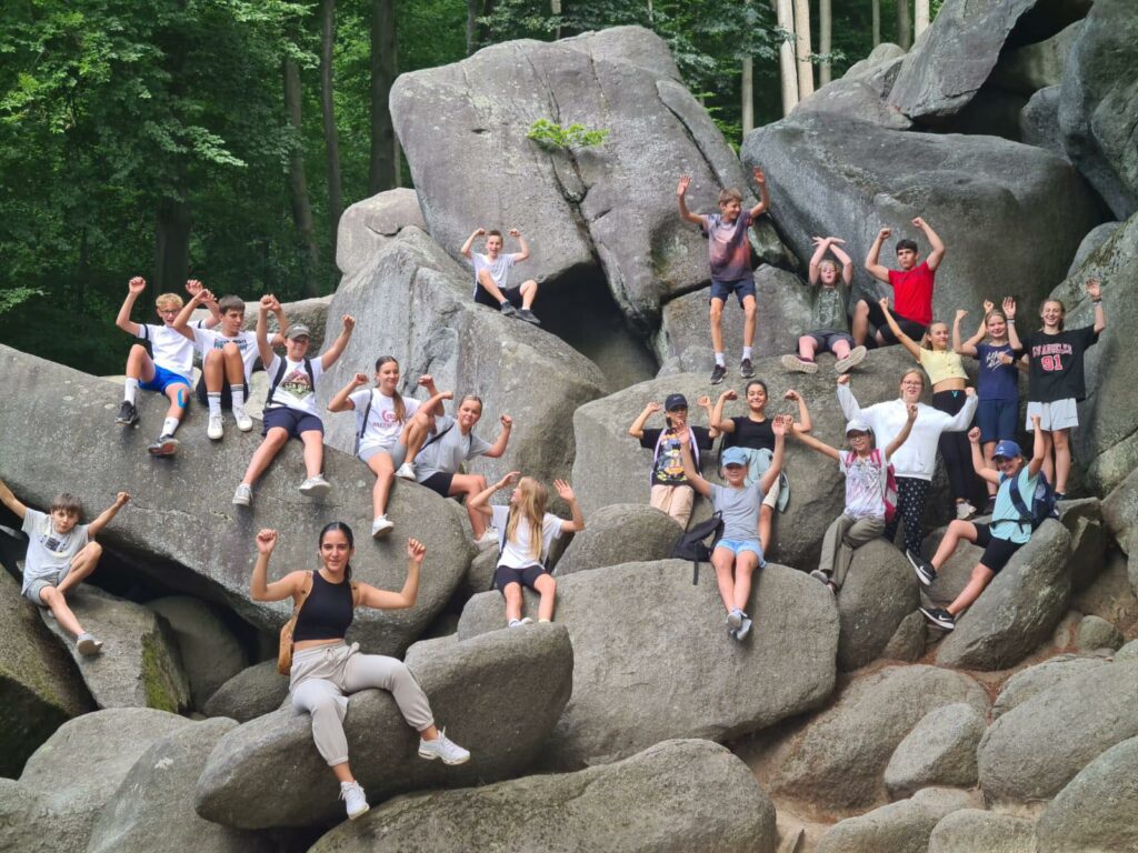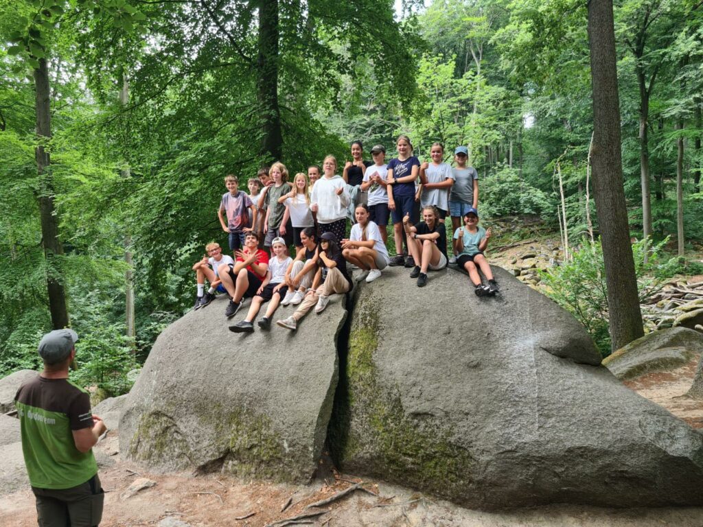 Gemeinsam hoch hinaus ging es vom 13.-14.7. für die Klasse 6a der Carl-Engler-Realschule. Unter dem Motto "Gemeinsam sind wir stark" absolvierten die hoch motivierten Schülerinnen und Schüler in diesen zwei Tagen erlebnispädagogische Aufgaben jeglicher Art. In wunderschöner Kulisse hoch oben am Borstein erlebten sie dadurch, wie wichtig jeder Einzelne für die Gruppe ist, aber auch wie viel in jedem Einzelnen stecken kann. Walter Knapp von der TSG Weinheim stellte die Gruppe dabei immer wieder vor neue Herausforderungen, die die Gruppe nur gemeinsam meistern konnte. Nach erfolgreich bestandenen Aufgaben sorgte Gastgeber Michel für reichlich leckeres Essen und beherbergte die Klasse mit ihren Lehrerinnen Julia Fändrich und Anne Schwarzer in seinem idyllisch gelegenen Landgasthaus am Borstein bei traumhaftem Wetter. Die zwei Tage werden allen nicht zuletzt aufgrund von romantischen Sonnenauf- und -untergängen sicher noch lange in guter Erinnerung bleiben.