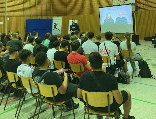 Mit ihrem Mutmacher-Seminar kamen die jungen Trainer am 14. Juni 23 an die Carl-Engler-Realschule in Hemsbach, um in viereinhalb Stunden vor allem eine Sache mitzugeben: Mehr Mut.