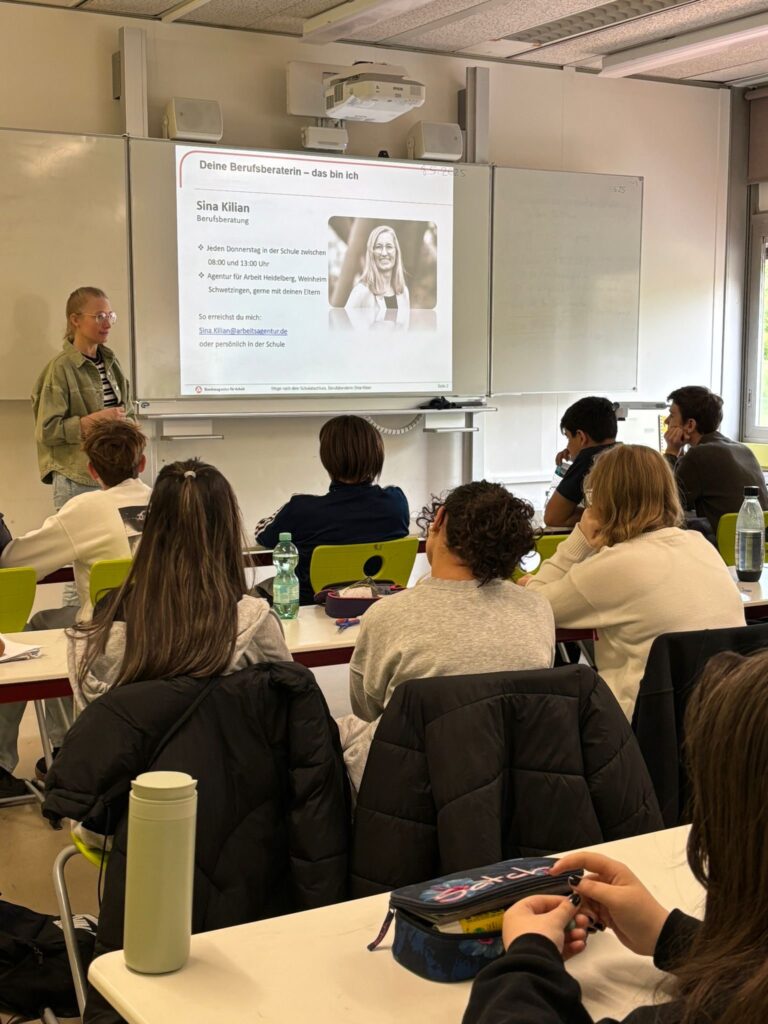 Die Berufsberaterin der Carl- Engler Realschule informiert in den 8. Klassen über den Berufswahlprozess mit wichtigen Tipps zum Suchen und Finden des passenden Berufs. Hervorgehoben wurden Wichtigkeit der Analyse der eigenen Fähigkeiten und Stärken , Mut gemacht, seinen Weg zu gehen und wertvolle Hinweise rund ums Praktikum gegeben. Die Suche nach Praktikumsplätzen und die Auswahl zu treffen wurden anschaulich dargelegt.