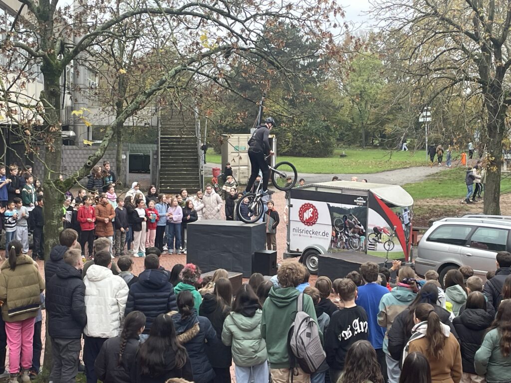 Pausenhofaktion mit Trail Bike-World Cup-Teilnehmer Nils Riecker